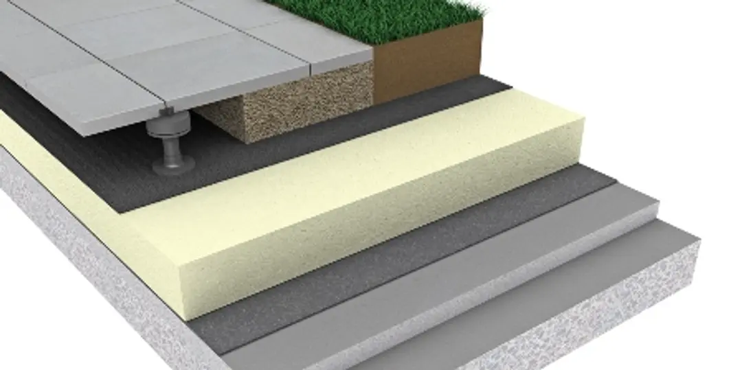Sundolitt XPS er med sin store trykstyrke og lave vandoptag egnet som isoleringslag oven på afvandende lag. Under afvandende lag kan typisk Sundolitt SMX plader anvendes med standardfald 1:100 eller 1:40.