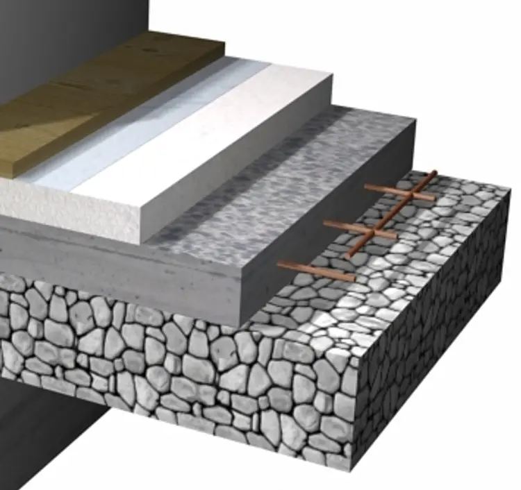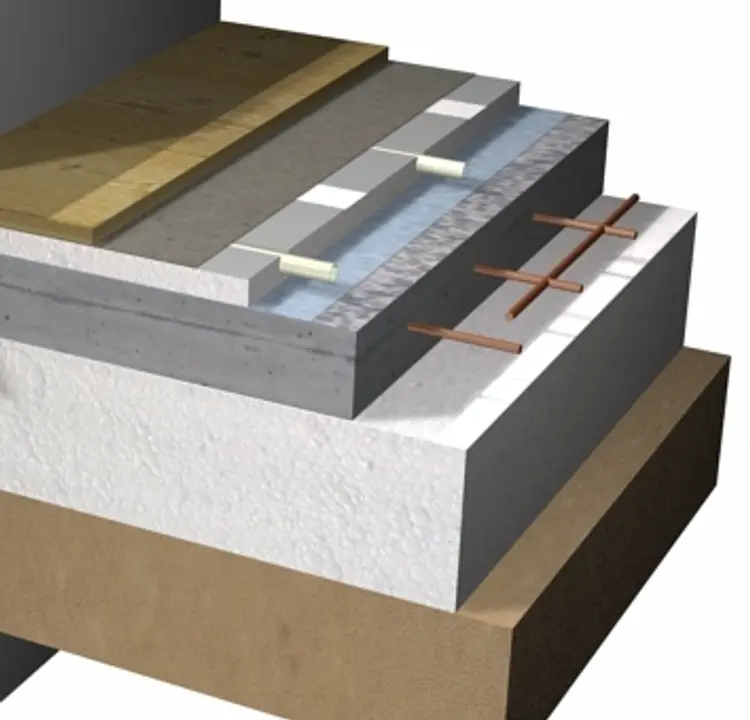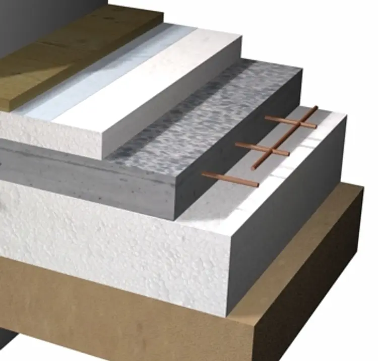 Dæk bestående af armeret beton i forskellige tykkelser afhængig af belastning og underliggende isolerings styrke og tykkelse.