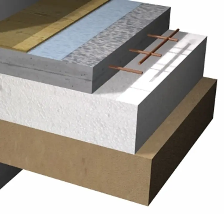 Isolering/gulvvarmeplader over betonplade skal være Sundolitt S250MX - læs mere i TræFakta 12 fra www.traeinfo.dk.